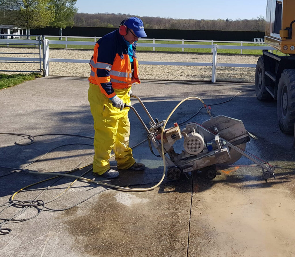 Der Fugenschneider kommt meist bei Industrieböden oder Asphalt zum Einsatz, aber auch bei Trennungsschnitten von Stahlbetonplatten.