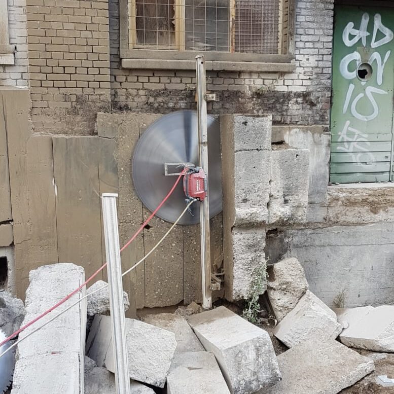 Unsere Sägeblätter können bis zu 60cm tief [sägen. So können Betontragplatten abgetrennt, Fundamente zersägt, Balkone demontiert, und Stahlbetonriegel entfernt werden.