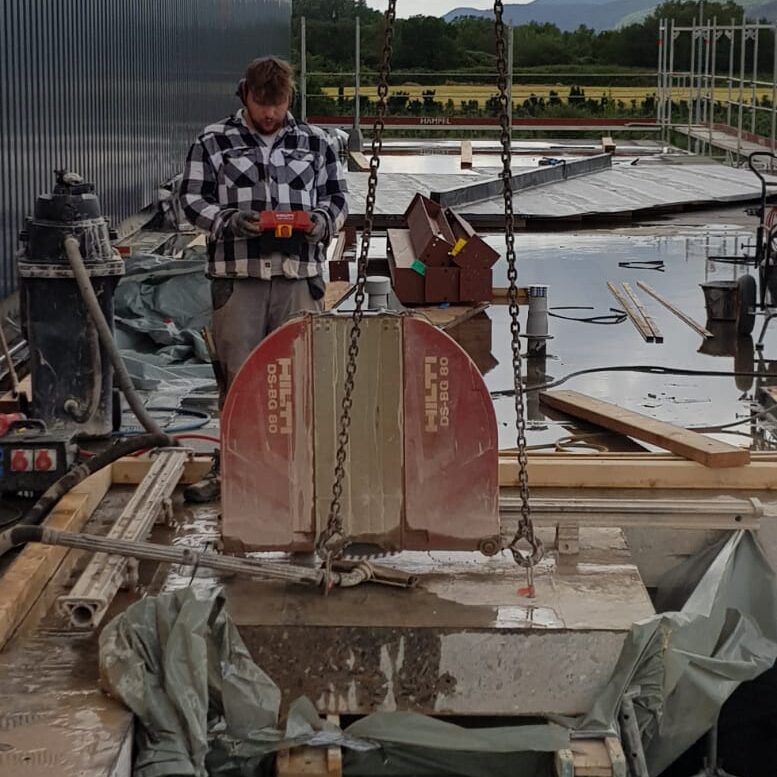Ist die Decke > 15 cm stark, so wird in der Regel unsere große Diamantsäge zum Einsatz gebracht.